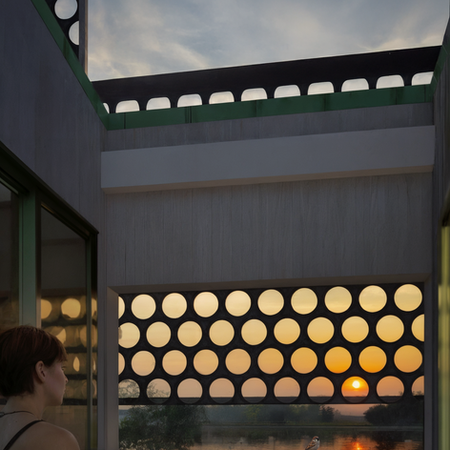 Patchwork House leker med former, mönster och material i ett hus som sticker ut med självsäker karaktär. Här möts en dansande planlösning med utblickar, ljusfyllda rum och bad under öppen himmel i en perfekt balans mellan lekfullhet, bling och funktion.